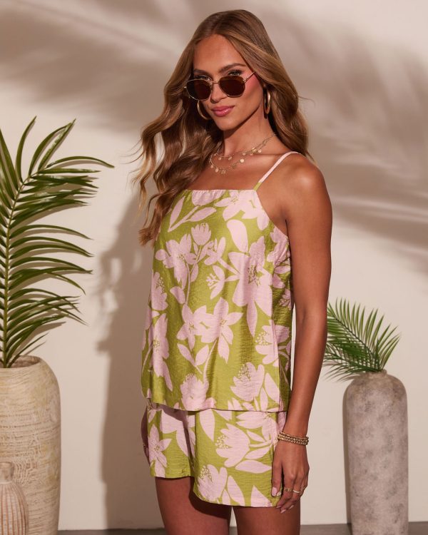 The Spritz Hour Floral Print Spaghetti Strap Top is your breezy. mood-boosting go-to for poolside hangs or afternoon spritz stops. Made from airy voile fabric with a vibrant floral print and dual side slits add movement and a peek of flair. while the adjustable back tie lets you find your perfect fit. Pair it with the matching Spritz Hour Floral Print Shorts (sold separately) for a sunny set that looks like a vacation even if you’re still in your zip code.
